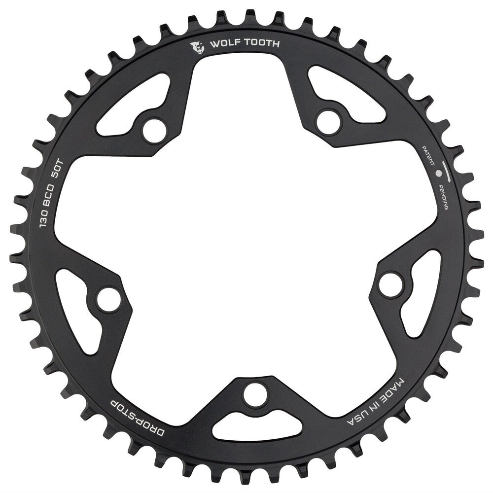 Wolf Tooth was first to market with cyclocross 1x specific chainrings because we saw cyclocross as the perfect use for our Drop-Stop technology. Since their release, the uses for these rings has expanded beyond cyclocross to commuting, gravel riding, and even full on-road applications with the giant 52t rings. Fits 130 BCD 5 arm cranksets Drop-Stop technology. On Wolf Tooth’s patented wide/narrow chainring, the wide side of the tooth has maximum contact on the drive side which spreads the load and improves chainring life. The narrow side allows clearance for mud and debris which reduces friction. Alternating wide/narrow tooth pattern prevents chain derailment For more details and compatibility information for this product please visit https://www.wolftoothcomponents.com/