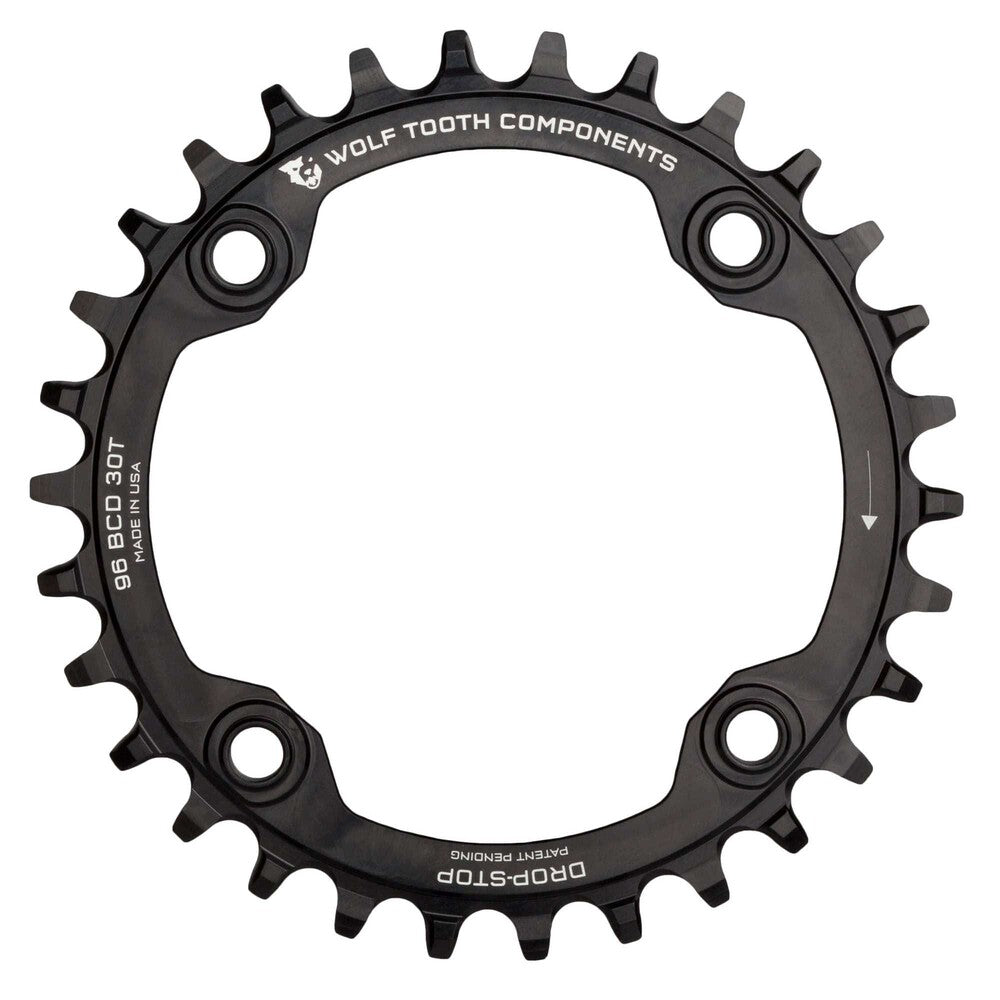 Looking for a 1X chainring for your Shimano compact triple crankset - models M782, M672, M622, or M612 – with the proven chain retention of our Drop-Stop chainrings? Wolf Tooth has what you need in this beautifully machined chainring with threaded standoffs that proved and ideal chainline. Fits any 96 BCDShimano Symmetric 4-bolt crankset Drop-Stop technology. On Wolf Tooth’s patented wide/narrow chainring, the wide side of the tooth has maximum contact on the drive side which spreads the load and improves chainring life. The narrow side allows clearance for mud and debris which reduces friction. Alternating wide/narrow tooth pattern prevents chain derailment For more details and compatibility information for this product please visit https://www.wolftoothcomponents.com/