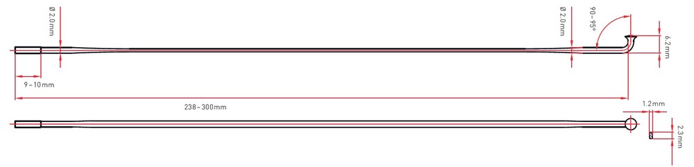 In a first step the middle section of this spoke is butted through cold forging. This makes it more light weight and stronger. In a further process it is bladed to optimize the aerodynamic characteristics while increasing the material strength. DT aero comp® guarantees a balanced ratio of stiffness, aerodynamics and durability. This spoke fits hubs with standard spoke holes. The straight pull version is aligned perfectly to straight pull hubs, and offers increased durability. Another benefit of this spoke is its excellent price-performance ratio.
