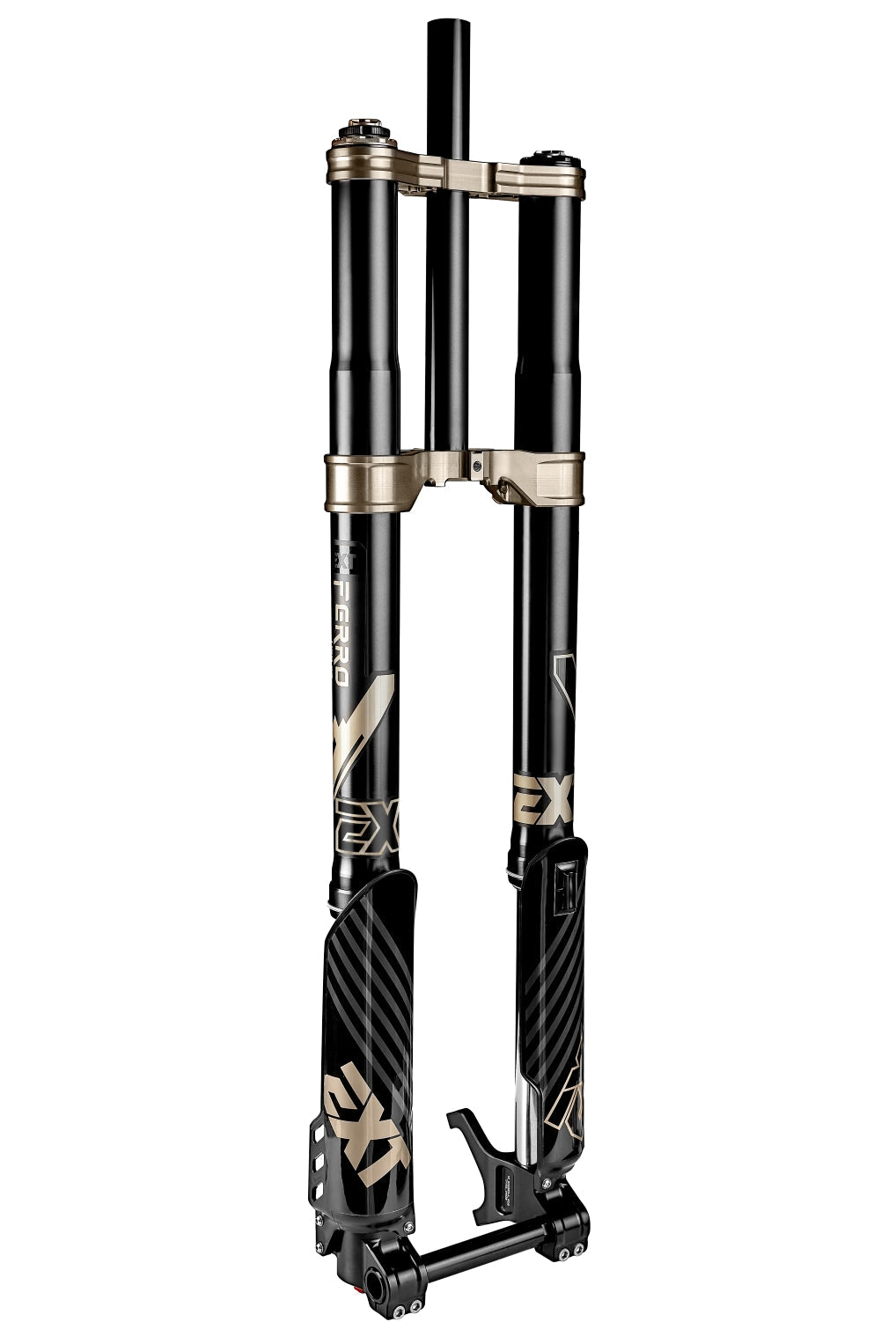 Since the growing worldwide success of electric dirt bikes, EXT Racing Shox saw the opportunity to use their decades-long knowledge of suspensions to create a custom solution to achieve the highest performance for their customers. As a result, they are proud to introduce the brand new FERRO USD 36, an upside-down 36mm stanchion fork. This fork is designed with hard heat-treated chromoly steel stanchions and a Superfinish surface treatment, 7000 series aluminium construction upper legs, and a 205mm travel design with dedicated triple clamps. All of these features make the core of the new 36mm USD fork, developed for minimum friction and high stiffness, and will take the E-MX line-up to the next level.