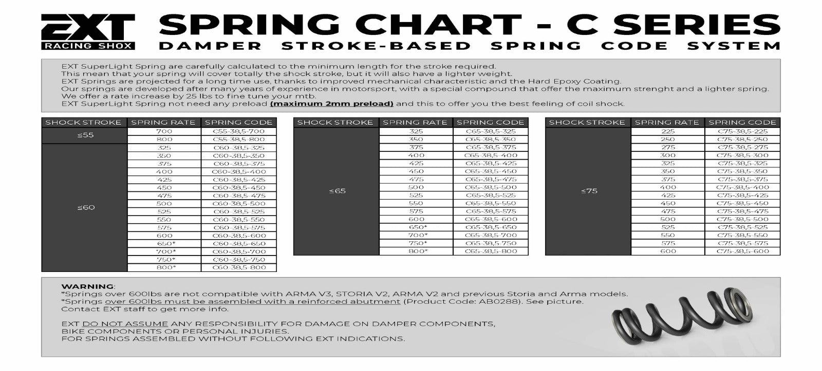 C75 Springs are for any EXT (or any other brand with adapter) damper with 65-75mm of stroke