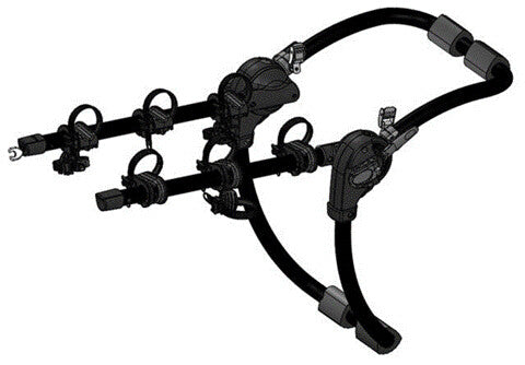 Robust trunk bike rack securely holds bikes, is easy to use, and folds for compact storage. Secure fit with integrated anti-sway cradles that prevent bike to bike contact 7" of spacing between the bikes prevents contact during transport Quickly attach bikes and easily secure them to the rack using the ratcheting cradle strap Compact cradle design accommodates wide variety of bike sizes and frame styles Bike rack arms independently adjust to fit a wide variety of bikes and fold down when not in use Access straps can be tucked away to protect the vehicle finish Folds up flat for convenient storage Locks the bikes to the bike rack with integrated cable lock Locks to the car with optional Thule Lock Strap (Sold separtely) Load capacity: 57.7 kg Dimensions: 59.7 x 45.7 x 83.8 cm