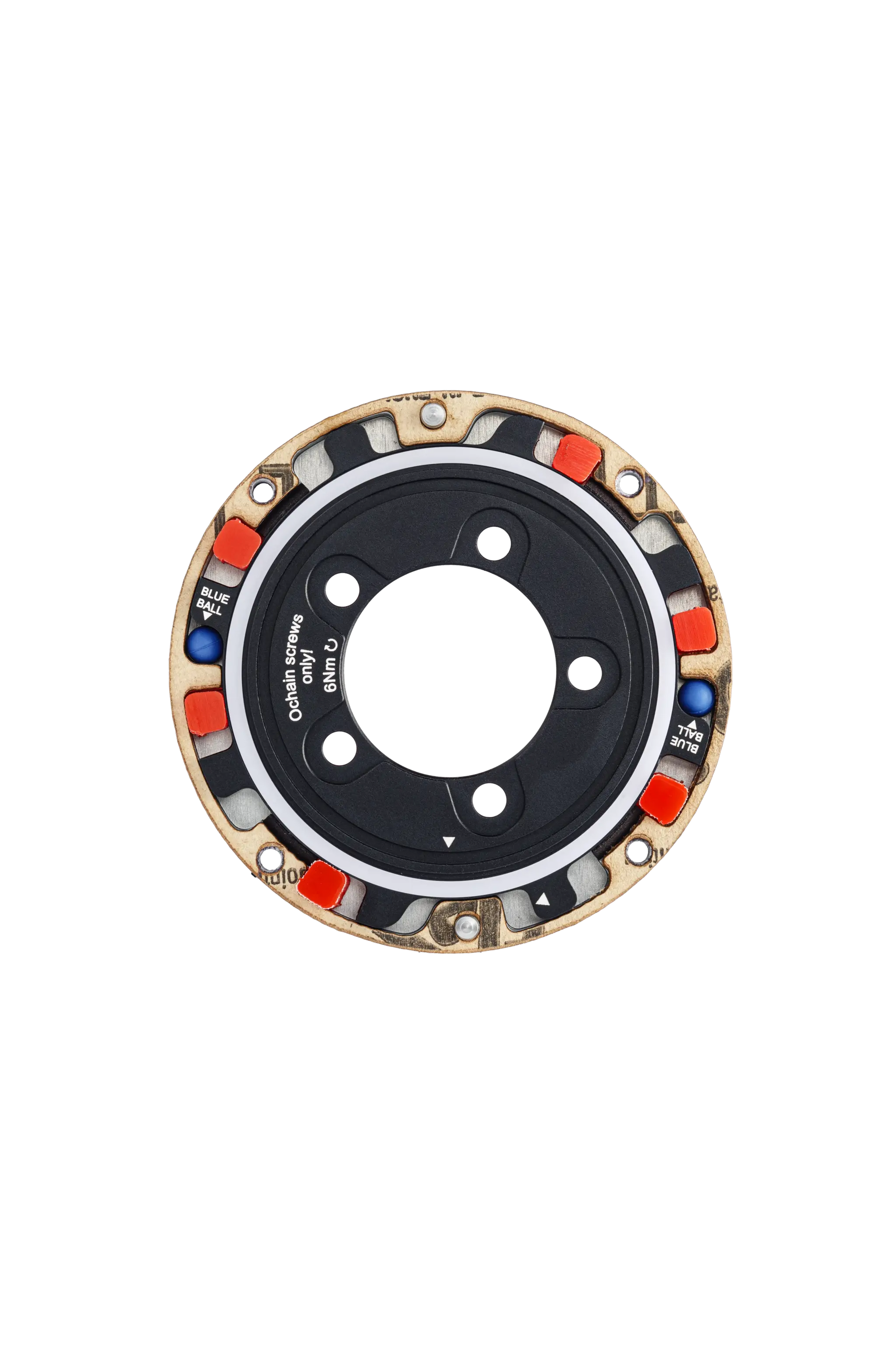 Both devices have adjustable degrees of freedom. On the S it is external and can be adjusted between 0, 4, 6, 9 and 12 degrees. 0 degrees acts as a normal chainring would (meaning you can set it to have no effect on pedaling for long climbs) and 12 degrees gives you the most amount of kickback-deleting effect which gives the best downhill performance. On the E model, the degrees of freedom are also adjustable between 4, 6, 9 and 12, but this is done internally and requires the Ochain to be disassembled and rebuilt (about a 20 minute job in the workshop).
