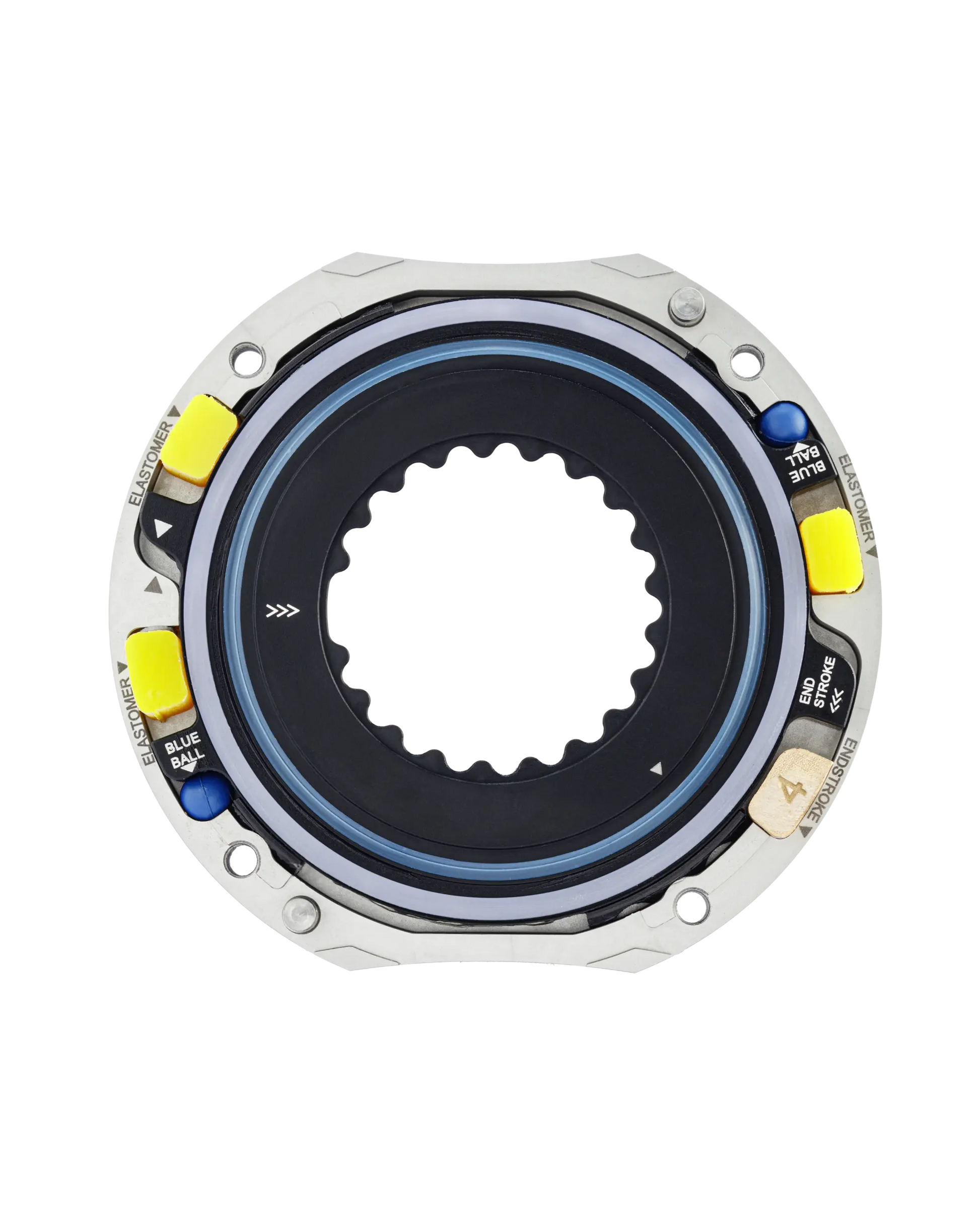 Both devices have adjustable degrees of freedom. On the R it is external and can be adjusted between 0, 4, 6, 9 and 12 degrees. 0 degrees acts as a normal chainring would (meaning you can set it to have no effect on pedaling for long climbs) and 12 degrees gives you the most amount of kickback-deleting effect which gives the best downhill performance. On the N model, the degrees of freedom are also adjustable between 4, 6, 9 and 12, but this is done internally and requires the Ochain to be disassembled and rebuilt (about a 20 minute job in the workshop).