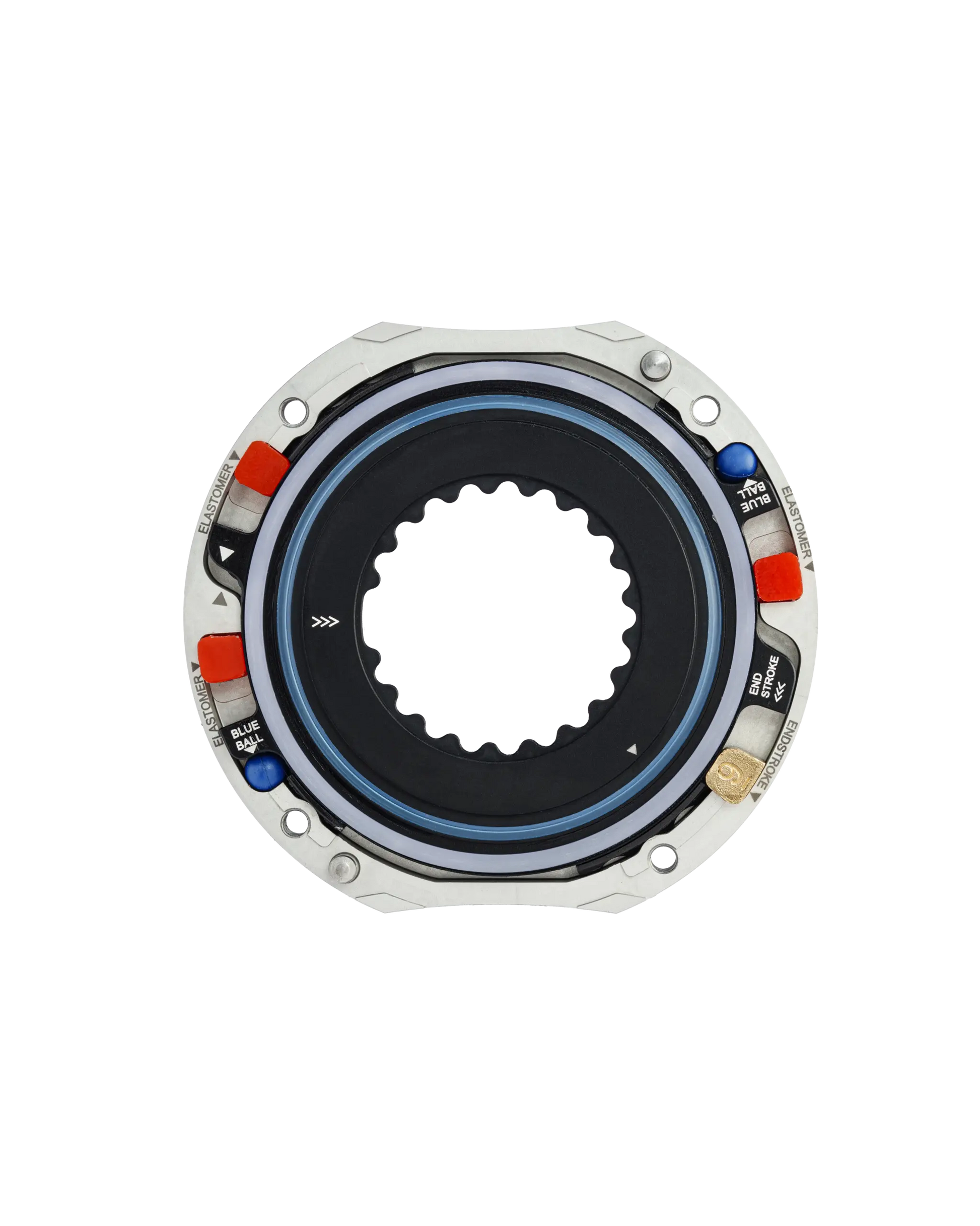 Ochain is an active spider, allowing the chainring to rotate backwards in order to disengage the transmission from the suspension, improving the whole riding experience and the bike’s performance.