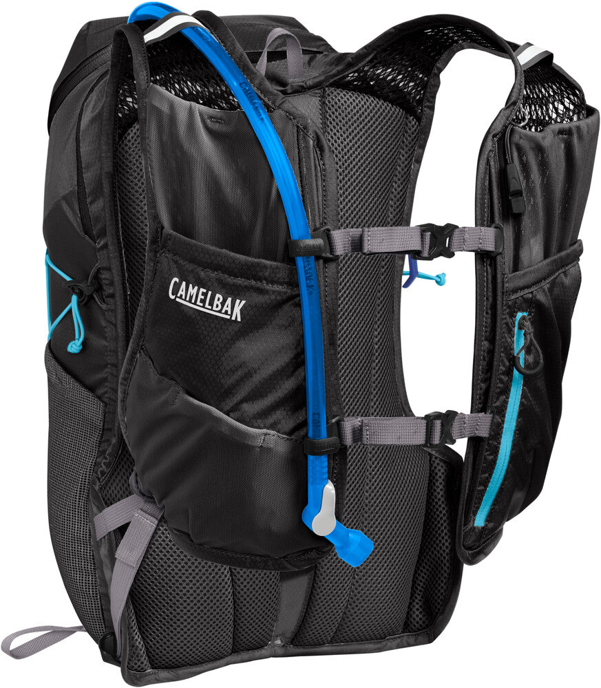 3D Vent Mesh Dual Adjustable Sternum Strap Fuel and Gear Storage Stretch Overflow Pocket Top Load Access Trekking Pole Attachment Tube Trap Management Quick Stow™ Compatible Reservoir Type: CRUX™ RESERVOIR QUICKLINK™ SYSTEM Water Capacity: 2L / 70 oz Total Capacity: 18L : 1090 cu in Cargo Capacity: 16L : 970 cu in Torso Fit: 38-53 cm : 15-21 in Pack Weight: 410 g : 14 oz