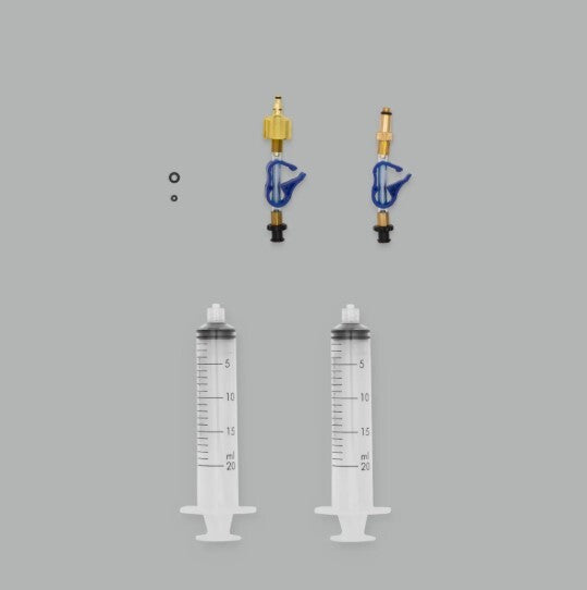 Bleedkit.com’s Basic Edge edition kit includes bare essentials for bleeding SRAM hydraulic brakes with Bleeding Edge bleed port. Fluid and bleed block not included. Includes: 2x 20 ml Becton & Dickinson syringes 1x M5 assembly 1x Edge assembly Spare O-rings Suitable for: This kit is compatible only with the latest SRAM 2017+ hydraulic brakes with Bleeding Edge bleed port. Not compatible with the older type of SRAM hydraulic brakes with an M5 bleed port.