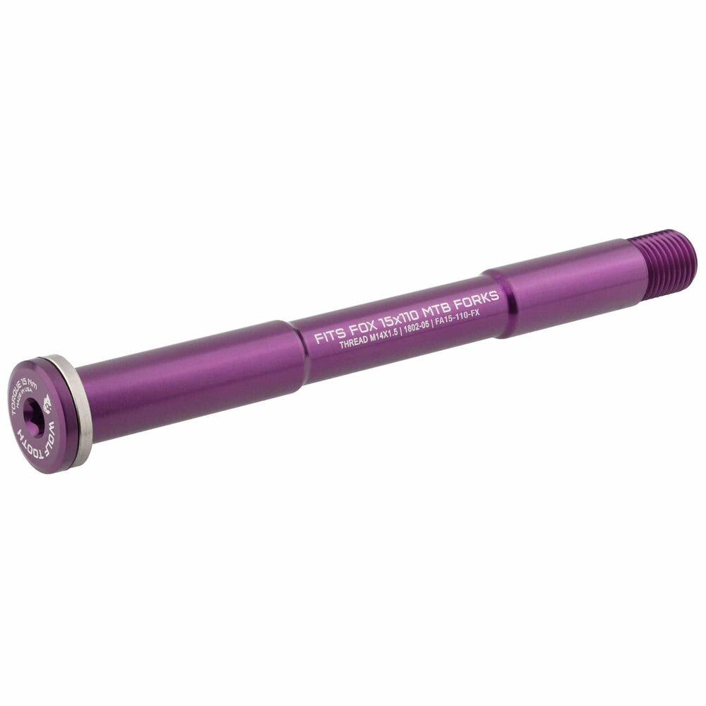 Wolf Tooth Front Axles are lightweight, easy to use, and friendly with your fork. They are available in a variety of colors and lengths for Standard, Boost, and Fat Bike forks. They use a captive steel washer under the head that protects your fork, transfers more of the tightening torque to clamping load for a stiffer interface, and prevents the axle from sticking or galling when you want to remove it. The new updated Wolf Tooth Front Axles now have an o-ring that makes them compatible with the Wolf Tooth Axle Handle Multi-Tool. For more details and compatibility information for this product please visit https://www.wolftoothcomponents.com/