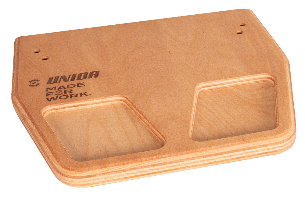 Say hello to the Unior Wooden Base for your Pro Truing Stand! Made from sturdy beech plywood with rounded edges, this base is designed to prevent scratching on your wood or stainless-steel bench top. Pre-drilled holes make it easy to mount the truing stand, and mounting bolts are included. This base is compatible with both V1 and V2 versions of the truing stand, and has two handy trays for storage of items like spoke wrenches and the ‘Made For Work’ logo has been burned into the wood. Whether you need to move the truing stand or keep it in place, this wooden base is the perfect solution. • Sturdy base for the Pro Truing Stands V1 and V2 • Prevents scratching your wood or stainless-steel bench top • Beech plywood with rounded edges • Pre-drilled holes for truing stand mounting, mounting bolts included • Two handy trays for storage of items such as spoke wrenches • Unior Made For Work logo burned into wood